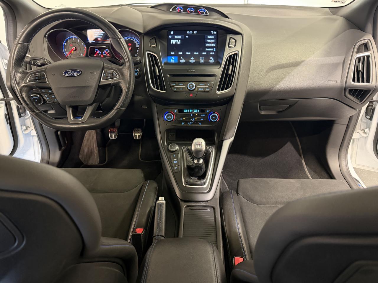 AUDIO NAV SYNC 3 : Ford SYNC 3 (avec écran tactile 8", Bluetooth et commandes vocales avancées), GPS Europe avec infoTrafic TMC, Guide Michelin, prise USB, 6 haut-parleurs, commandes au volant - Intègre Apple Carplay et Android AutoBadge RS sur le hayonBecquet arrière spécifique RSCalandre noire spécifique RSContrôle Vectoriel de Couple (TVC)Différentiel à glissement limité QuaifeDiffuseur arrière spécifique RSEtriers de freins Bleu NitrousFreins à Disques RSJantes Alliage 19” forgées avec logo RSPédalier spécifique RSPhares bi-Xénon Dynamiques intérieur noirSuspension Sport RSSystème de surveillance de pression des pneus