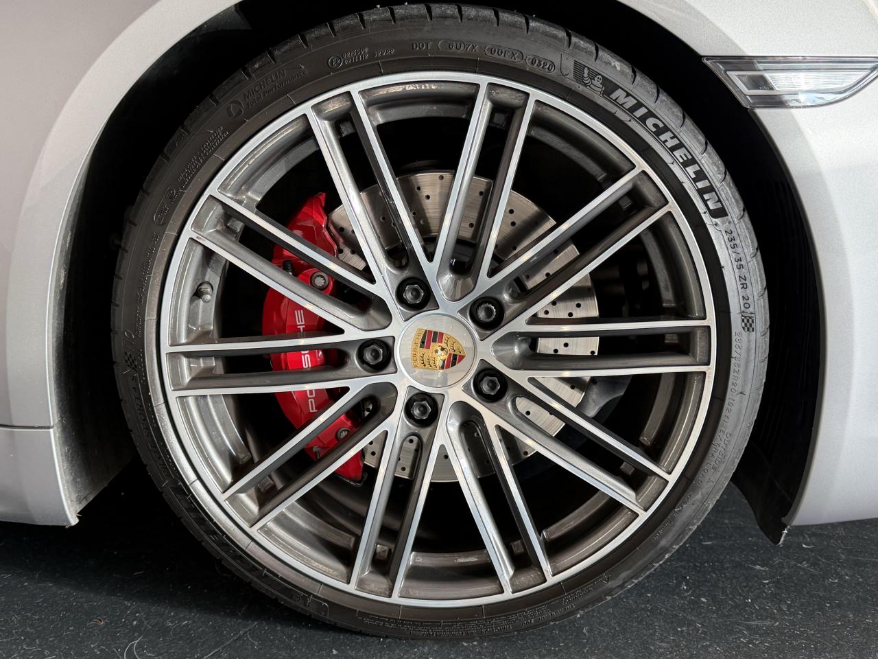 Affichage des limitations de vitesse Apple CarPlay avec commande vocale Siri Assistance Parking avant et arrière Bandes centrales des sièges en cuir couleur contrastante BOSE Surround Sound-System Climatisation automatique bi-zone Dossiers des sièges sport Plus en cuir avec coutures couleur... Ecusson Porsche sur appuis-tête Filet de rangement côté passager Fond du chronomètre Blanc Fonds de compteur en Blanc Intérieur tout cuir Jantes Turbo 20 pouces Module de navigation incluant Porsche Connect Pack Intérieur Aluminium brossé Régulateur de vitesse Rétroviseurs extérieurs rabattables électriquement... Rétroviseurs intérieur et extérieurs avec... Servotronic Plus Sièges chauffants