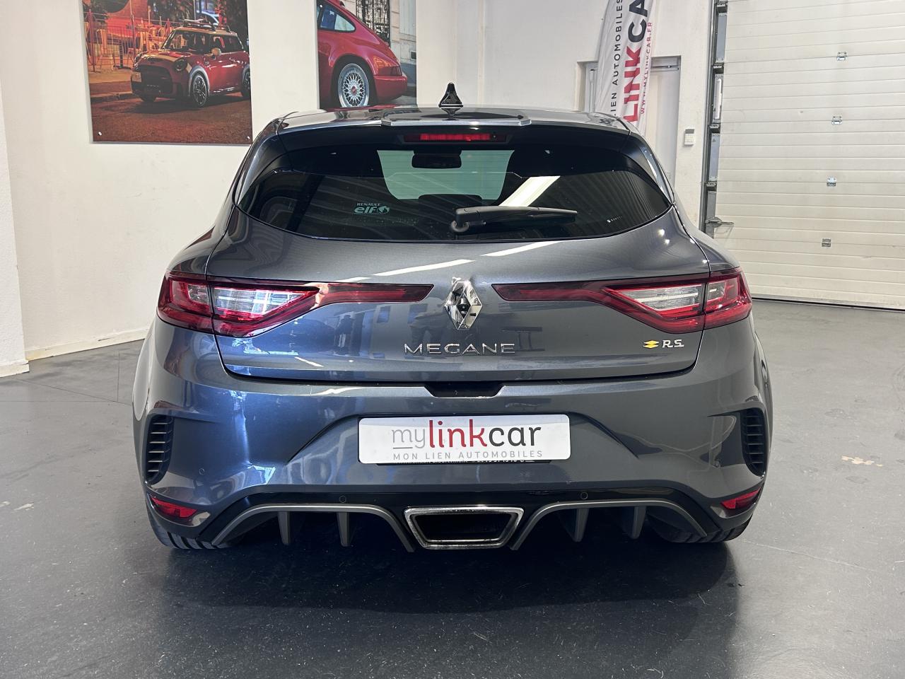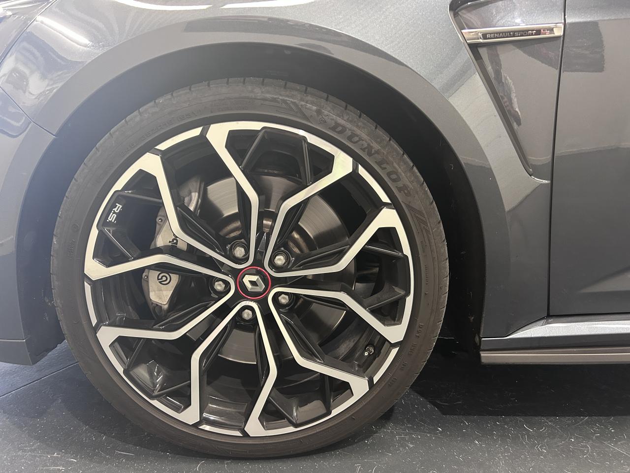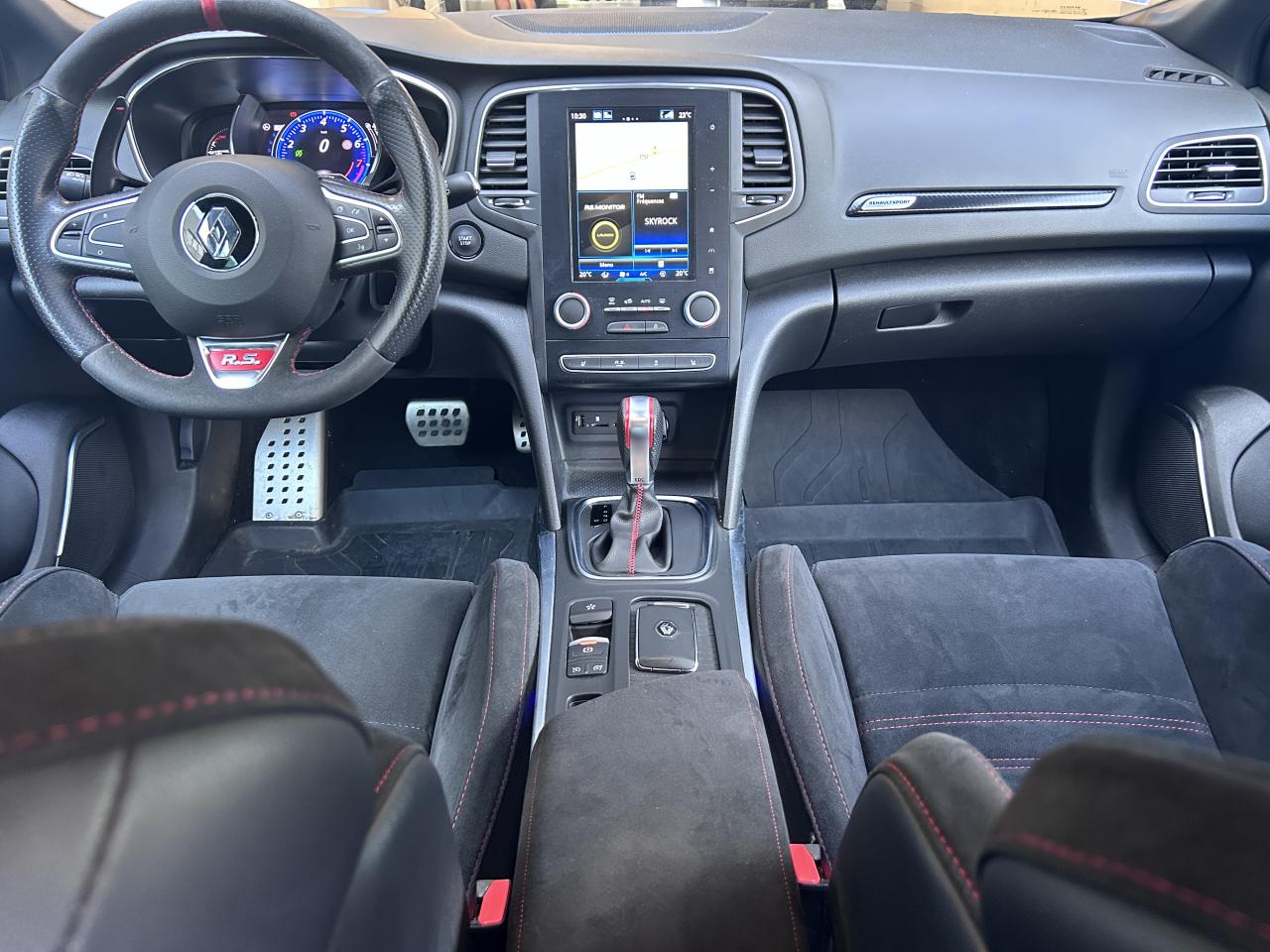 Aide au parking avantAide au stationnement arrièreCaméra de reculCompteur TFT 7’’ avec matrice couleur avec affichage spécifique Renault SportContrôle dynamique de trajectoire (ESC)Feux de jour à guide de lumière LED et effet 3DFreinage actif d'urgenceMultichange down (système de rétrogradage avancé)Pack R-Link 2Projecteurs avant Full LED PURE VISION avec clignotant C-Shape intégréProjecteurs R.S. VISION Full LED 3 fonctions (antibrouillard, cornering, longue portée)Radio Numérique DABSellerie tissu R.S. carbone foncé et surpiqûres rougesSièges avant chauffantsSystème 4-control (Chassis à 4 roues directrices)Système de Launch Control (Aide aux départs arrêtés)