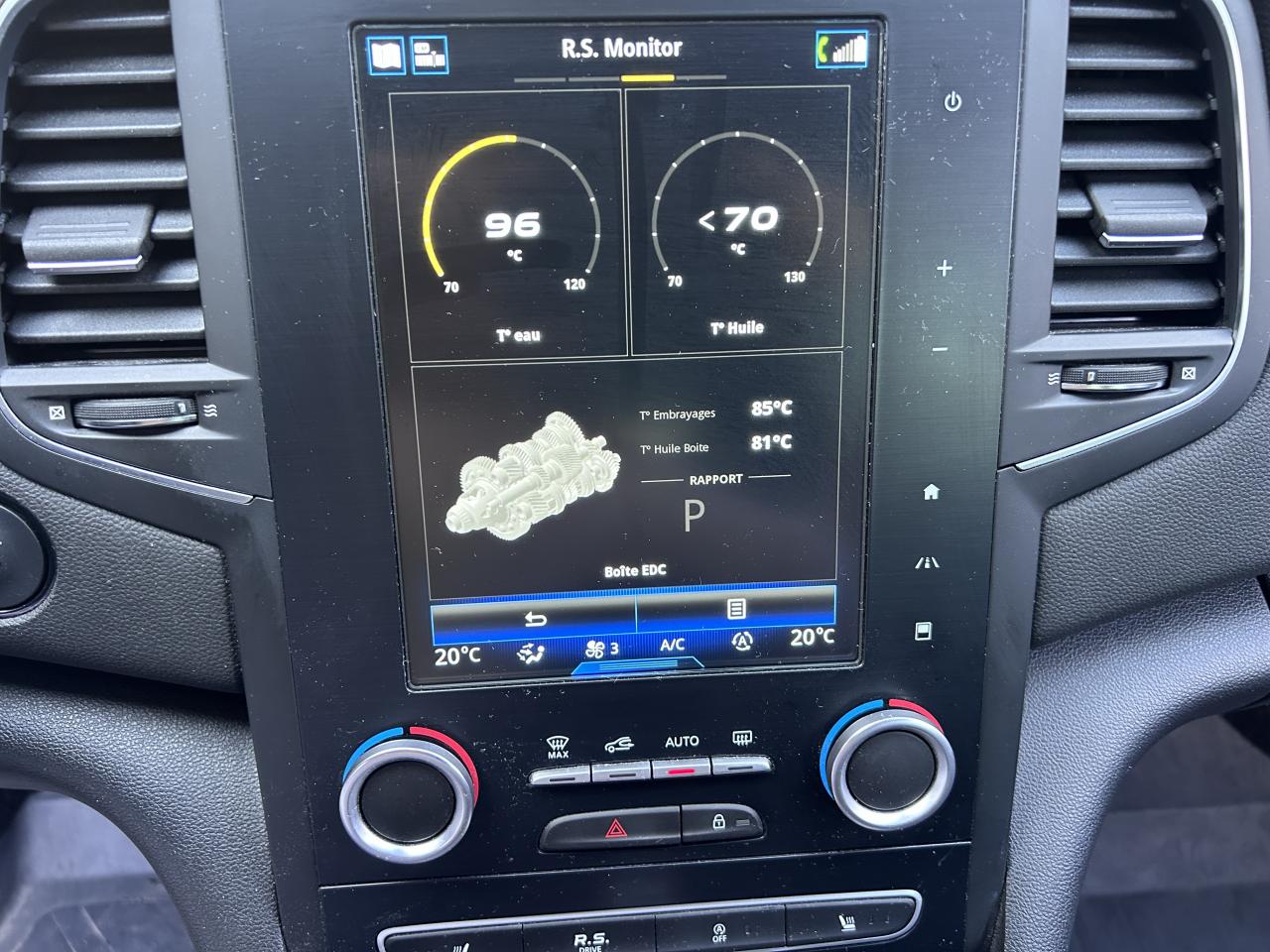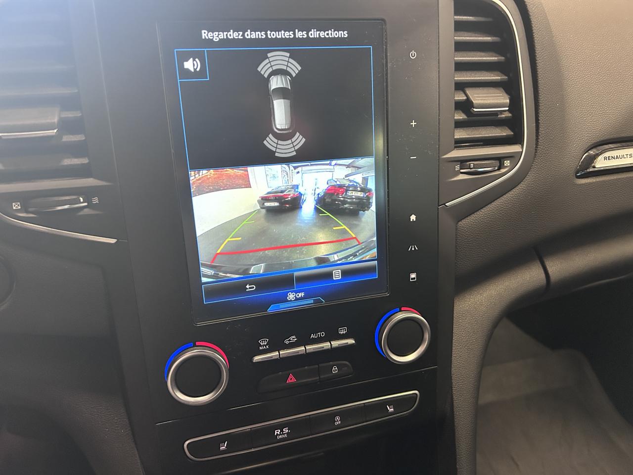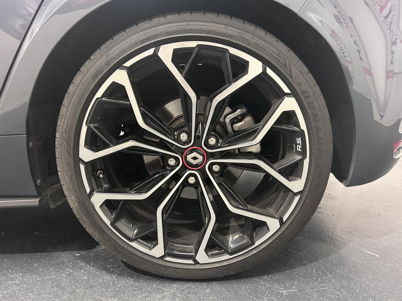 Aide au parking avantAide au stationnement arrièreCaméra de reculCompteur TFT 7’’ avec matrice couleur avec affichage spécifique Renault SportContrôle dynamique de trajectoire (ESC)Feux de jour à guide de lumière LED et effet 3DFreinage actif d'urgenceMultichange down (système de rétrogradage avancé)Pack R-Link 2Projecteurs avant Full LED PURE VISION avec clignotant C-Shape intégréProjecteurs R.S. VISION Full LED 3 fonctions (antibrouillard, cornering, longue portée)Radio Numérique DABSellerie tissu R.S. carbone foncé et surpiqûres rougesSièges avant chauffantsSystème 4-control (Chassis à 4 roues directrices)Système de Launch Control (Aide aux départs arrêtés)